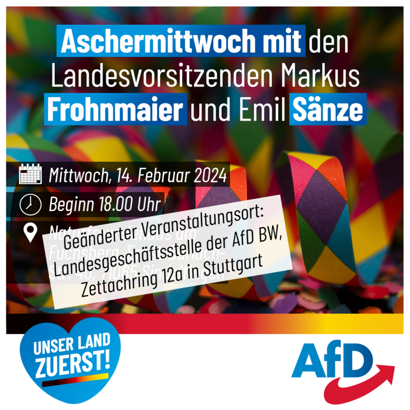 Die Regierung setzt gerade alles daran, die Redefreiheit für die Opposition abzuschaffen. Unter der heuchlerischen Bezeichnung „Demokratiefördergesetz“ soll unter anderem der Inlandsgeheimdienst dazu ermächtigt werden, Druck auf Gaststätten auszuüben, damit diese ihre Räumlichkeiten nicht mehr für mißliebige Veranstaltungen zur Verfügung stellen. Schon jetzt werden der AfD immer wieder zugesagte Räume widerrufen — zuletzt gerade heute, als die AfD-Landesvorsitzenden Markus Frohnmaier und Emil Sänze zum politischen Aschermitwoch ins Sindelfinger Naturfreundehaus einluden, was der NaturFreunde-Dachverband kurz vorher zu verhindern wusste.