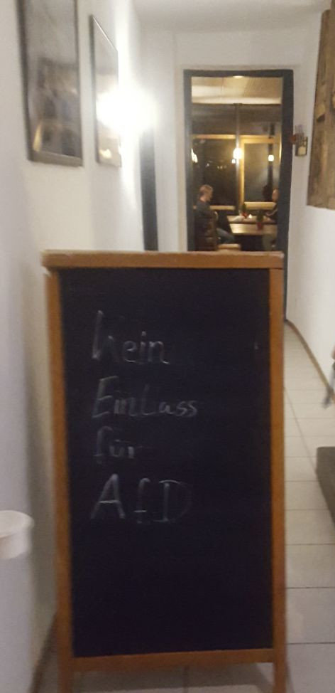Als wir am 24. Januar gegen die geplanten Windkraftanlagen in Heiligenberg protestiert hatten, fanden wir in der benachbarten Pizzeria Ambiente da Pino einen Aufsteller mit der Aufschrift: „Kein Einlass für AfD“ — für uns sozusagen Alltag im postdemokratischen Deutschland. Wer das gleiche mit den Grünen macht, der wird von der Staatsanwaltschaft verfolgt und schafft es in die Tagesschau.
