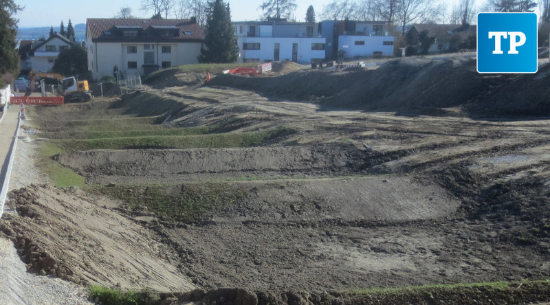 Die Stadträte sind aufgebracht, weil das neue Überlinger Quartier Südlich Härlen, das derzeit unterhalb des neuen Pflegezentrums Überlingen am Krankenhaus aus dem Boden gestampft wird, so gar nicht ihren Vorstellungen entspricht. Gemeinderatskollege und Landschaftsarchitekt Herbert Dreiseitl von den Grünen kritisierte schon vor Wochen: „das was sichtbar ist, haben wir nicht bestellt“, es „erinnert derzeit eher an Panzersperren und Verteidigungsgräben aus dem ersten Weltkrieg“. Damit liegt er nicht ganz daneben, wie das Foto erkennen lässt.