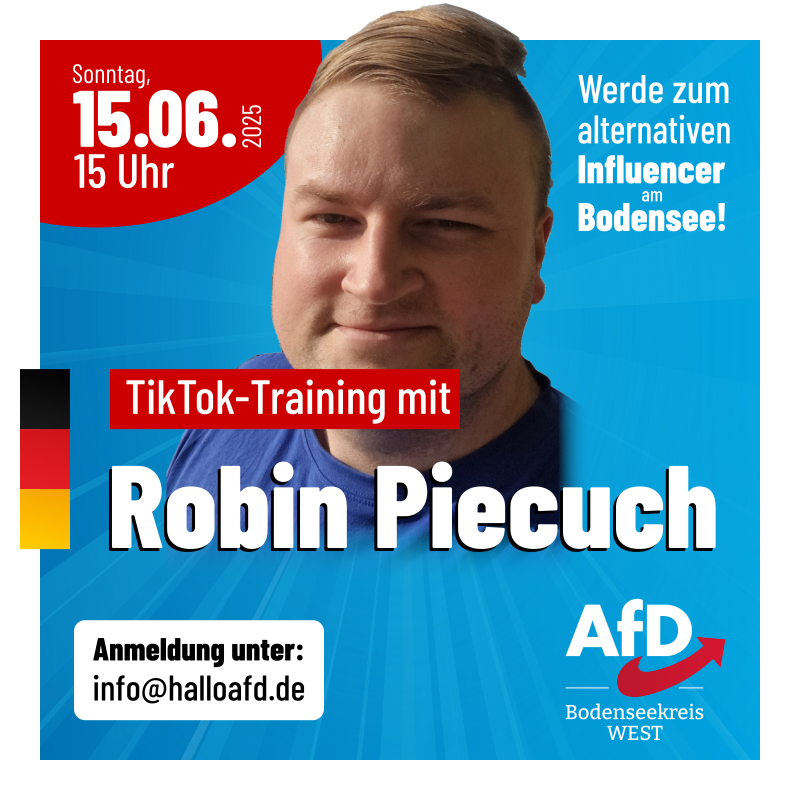 TikTok hat eine große Reichweite und sollte für die politische Meinungsbildung nicht außer Acht gelassen werden. Für den AfD Kreisverband Bodenseekreis wären kurze politische Kommentare zu hoch aktuellen Themen mit lokalem Bezug ideal. Wer möchte das einmal ausprobieren?
