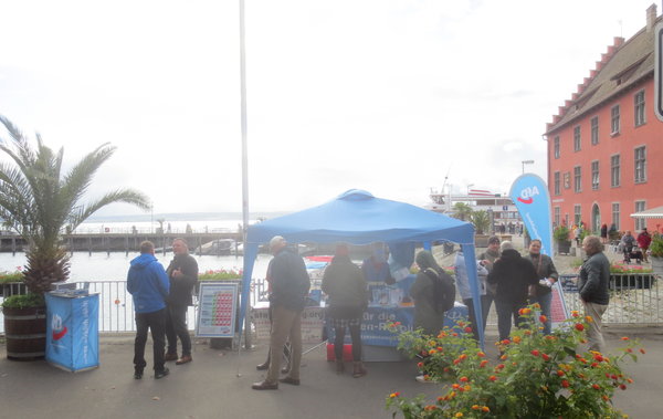 Gestern waren wir bei der Friedenskette Bodensee mit einem Infostand in Meersburg dabei und trotzten gelegentlichen Windböen und kurzen Regenschauern.